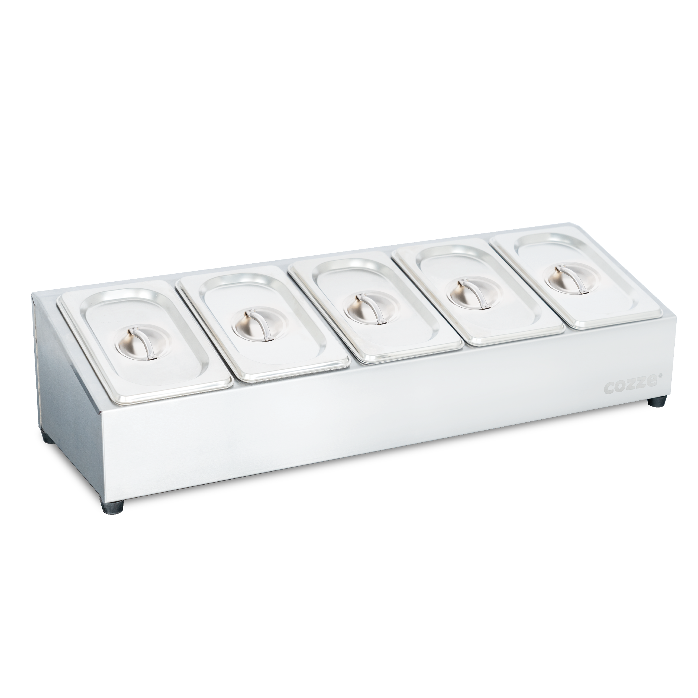 Organiser nemt dine pizzatoppings med vores praktiske toppingstation. De fem rum gør det nemt at adskille, fylde og genopfylde alt fra pizzasauce til ost og forskellige toppings.