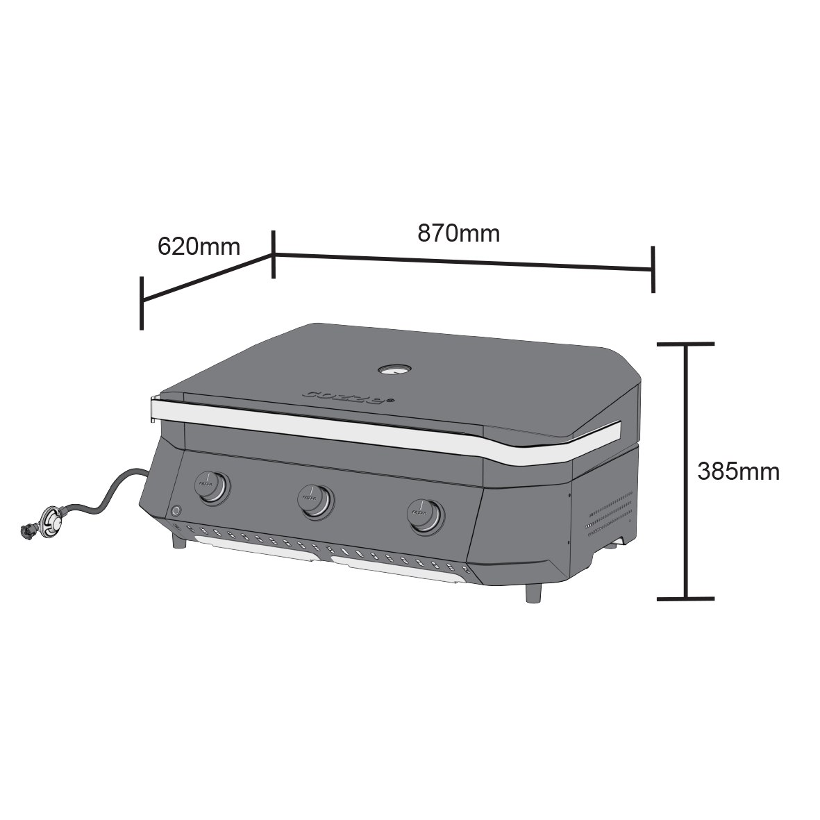 - Versatile cooking with three powerful gas burners.